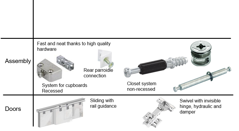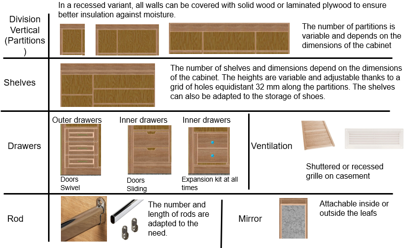 MAZINHO cupboards are designed according to the principles of modularity. Our construction principle allows us to offer you several possible cupboard configurations: