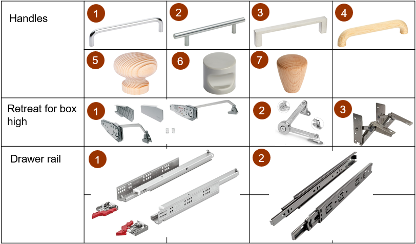 Mazanho wood offers you hardware elements according to the use defined by the application. These elements are chosen from suppliers who meet quality standards and can deliver certificates to us upon request.