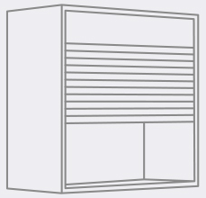 Caissons haut avec battants à ouverture de gauche à droite (pivotement vertical)
