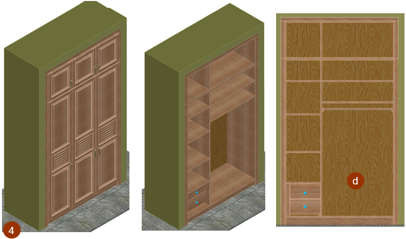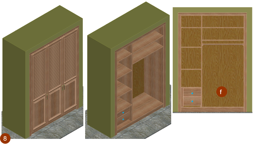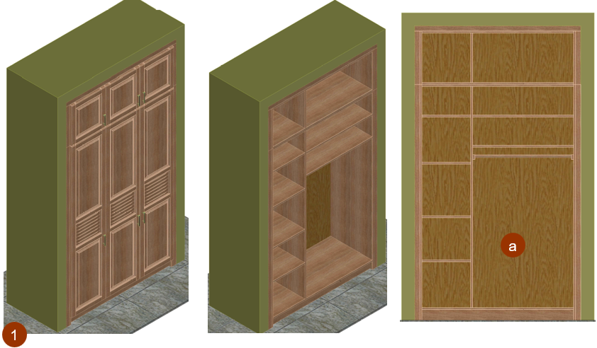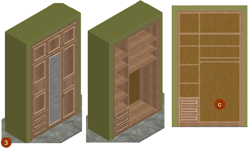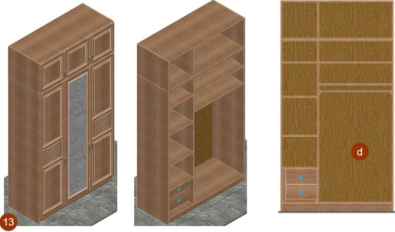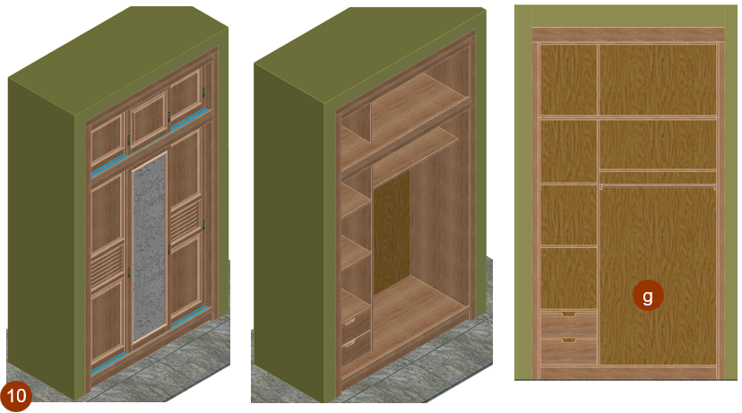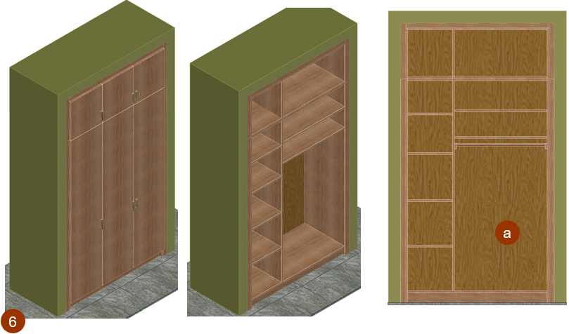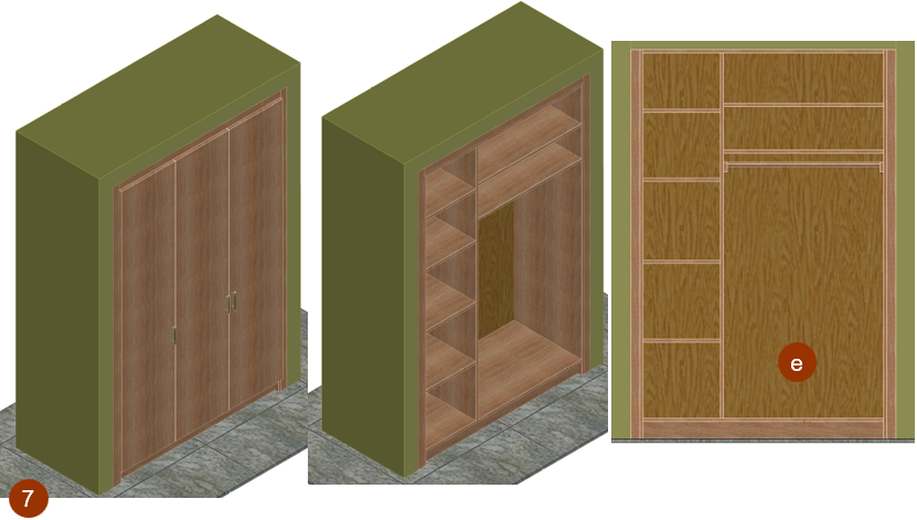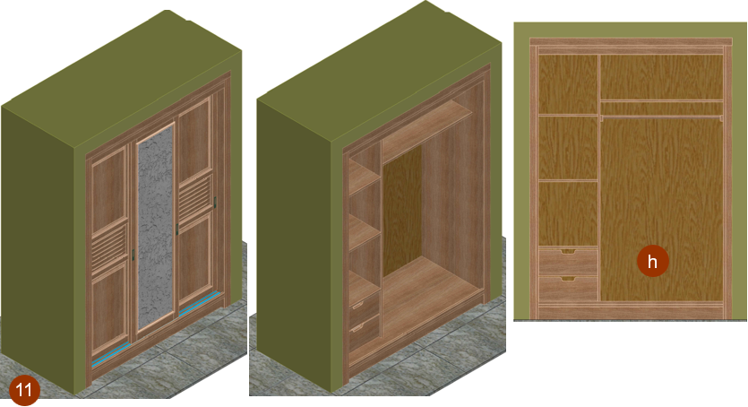 Les placards peuvent êtres fabriqués sur mesure au cm près. A une hauteur de plus de 220 cm les placards sont fait en 2 modules (haut et bas).