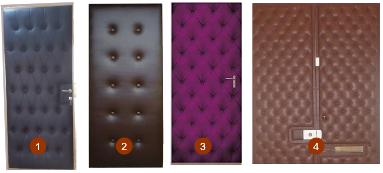 Le design des portes capitonnées MAZANHO est variable selon les exigences. L‘intégration d‘une plaque de propreté est fonction de l‘épaisseur de la mousse.